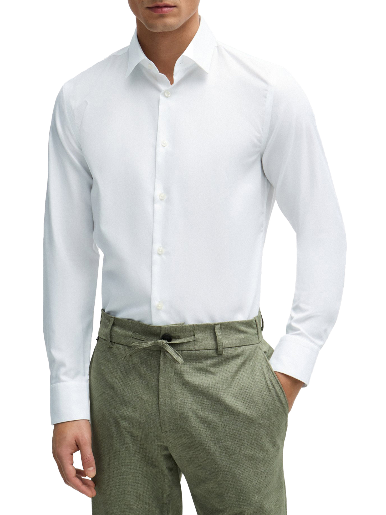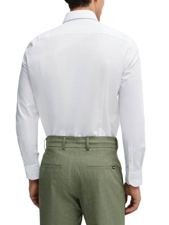 Ανδρικό πουκάμισο υπογραφής Boss. Είναι φτιαγμένο από 100% βαμβάκι και διαθέτει slim εφαρμογή. Έχει γιακά kent και στρογγυλές μανσέτες.