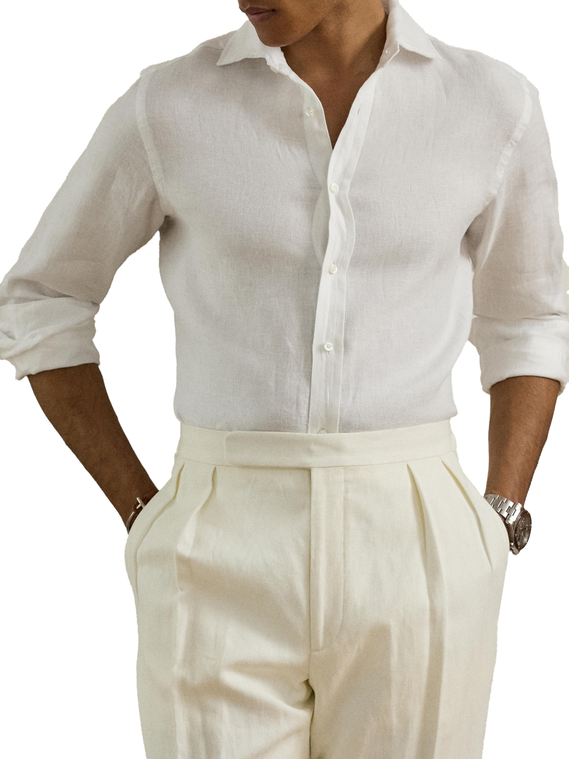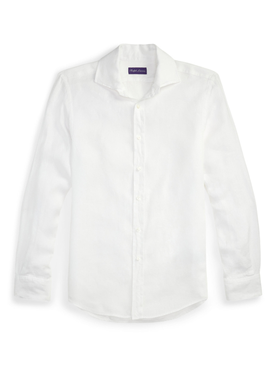 Ανδρικό λινό πουκάμισο υπογραφής Ralph Lauren Purple Label. Διαθέτει κλασσικό γιακά και μανσέτες με κουμπί.