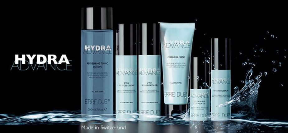 Η ERRE DUE παρουσιάζει την νέα σειρά ενυδάτωσης προσώπου Hydra Advance. Ένα ολοκληρωμένο πρόγραμμα περιποίησης της επιδερμίδας με Ελβετική υπογραφή. Μία αστείρευτη πηγή ενυδάτωσης, ένα προηγμένο, τεχνολογικό θαύμα που παράγεται και συσκευάζεται αποκλειστικά σε Ελβετικά εργαστήρια. Σύμπλεγμα νερού παγετώνα από τις Ελβετικές Άλπεις, βλαστοκύτταρα φραγκόσυκου, εκχύλισμα άγριου πανσέ και πολυσακχαρίτες συνθέτουν έξυπνα το μοναδικό σύμπλεγμα Triple Action Moisture-Charge Complex το οποίο απελευθερώνει την ενεργή του δράση για την ενίσχυση, κυκλοφορία και διατήρηση της υγρασίας, εξασφαλίζοντας την βελτίωση της ελαστικότητας και την ανανέωση της επιδερμίδας προσφέροντας αίσθηση πολυτέλειας και ευεξίας.
