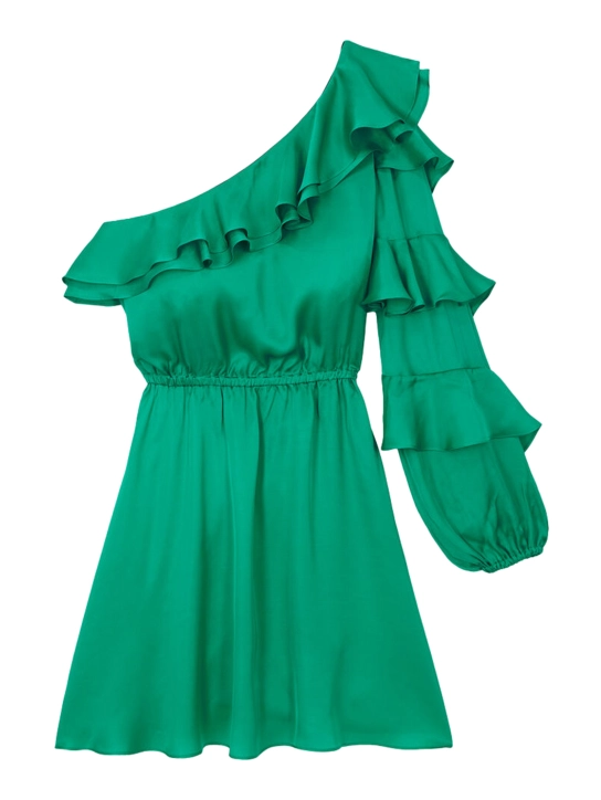 Το απόλυτο statement φόρεμα φέρει την υπόγραφή της The Kooples. Η εικόνα μιλάει από μόνη της σ’ αυτό το τόσο εντυπωσιακό φόρεμα. Το έντονο πράσινο χρώμα, η ιδιαίτερα κολακευτική γραμμή αλλά και τα βολάν του είναι τα στοιχεία που θα τραβήξουν τα βλέμματα, όπως κι αν επιλέξετε να το φορέσετε. Χαρίστε του rock διάθεση συνδυάζοντάς το με δερμάτινα μποτάκια και ζώνη ή μετατρέψτε το σε ένα απόλυτα glamorous κομμάτι, φορώντας το με χρυσά αξεσουάρ και πέδιλα.