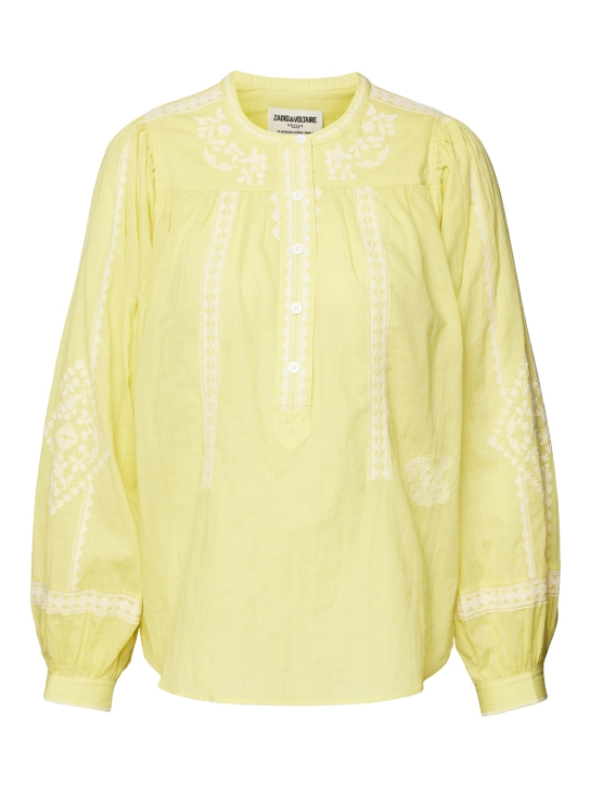 Το παντελόνι σε γραμμή καμπάνα έχει επανέλθει έντονα το τελευταίο διάστημα και έτσι αν έχετε jeans σ’ αυτό το στιλ έχετε έναν λόγο παραπάνω για να τα φορέσετε αυτή τη σεζόν. Για τις ανοιξιάτικες εξορμήσεις σας ένα από τα κομμάτια που θα αναβαθμίσουν αυτά τα jeans είναι τα τοπ με ύφος που θυμίζει λίγο boho, αλλά στην πιο μοντέρνα του εκδοχή. Αντιπροσωπευτικό παράδειγμα, αυτή η μπλούζα που φέρει την υπογραφή Zadig & Voltaire και μοιάζει πραγματικά να έχει φτιαχτεί για να φορεθεί με τζιν παντελόνι σε γραμμή καμπάνα και λευκά sneakers.
