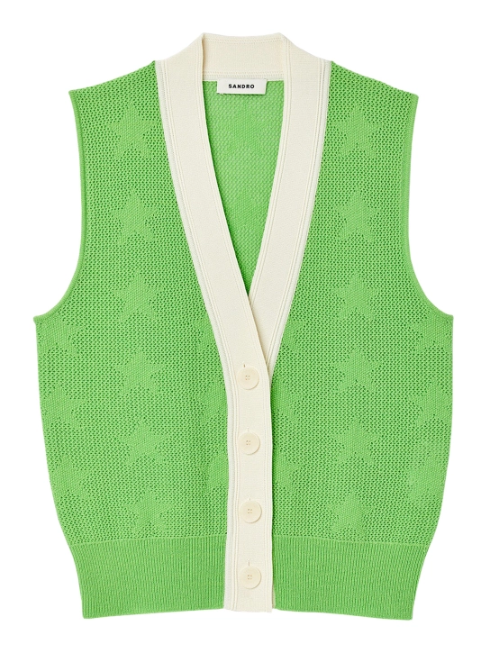 Τα αμάνικα πλεκτά έκαναν την εμφάνισή τους μερικές σεζόν πριν και αγαπήθηκαν ιδιαίτερα μιας και θυμίζουν έντονα το πολύ δημοφιλές κολεγιακό στιλ. Φέτος δοκιμάστε την πιο updated εκδοχή τους, χαρακτηριστικό παράδειγμα της οποίας είναι αυτή της Sandro. Αυτή η αμάνικη ζακέτα μπορεί να φορεθεί με ένα πουκάμισο, τζιν και sneakers αλλά και με ένα λευκό T-shirt και παντελόνι φόρμας, για ένα πιο άνετο και cool αποτέλεσμα.