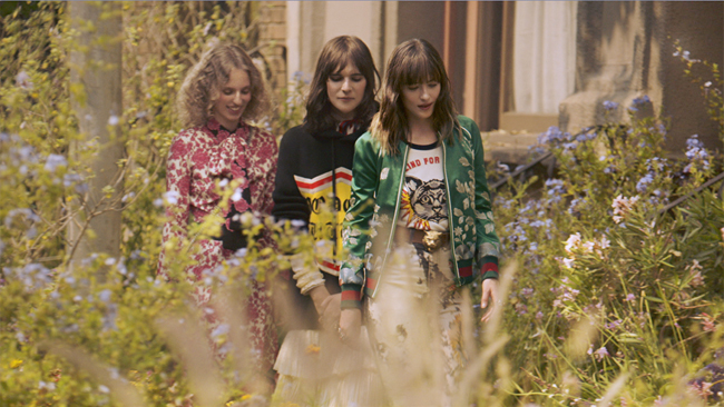 Συγκεντρώνοντας όλη τη φιλοσοφία του Gucci Bloom, η ιδέα της διαφημιστικής του καμπάνιας αποκαλύπτεται μέσα από τις σύγχρονες γυναίκες του οίκου Gucci: την ηθοποιό Dakota Johnson, την ηθοποιό και μοντέλο Hari Nef και την εικαστικό Petra Collins. Όλες τους, φίλες του Alessandro Michele, διατηρούν μια ιδιαίτερη σχέση με τον οίκο καθώς το ταλέντο τους αντικατοπτρίζεται στο νέο όραμα του οίκου Gucci. Η διαφορετική ομορφιά της κάθε μίας ξεχωριστά απαθανατίζεται από τον Glen Luchford, κάνοντάς τες να ακτινοβολούν στο συνεχώς μεταβαλλόμενο σκηνικό της καμπάνιας. Φορούν το άρωμα Gucci Bloom στην πόλη καθ’όλη τη διάρκεια της ημέρας, μετατρέποντας το αστικό τοπίο σε ένα φανταστικό περίπατο μέσα σε ένα ειδυλλιακό βρετανικό κήπο. Απολαμβάνουν το τσάι τους σε ένα πεζόδρομο που γεμίζει με άνθη, περπατούν σε ένα διαμέρισμα που γεμίζει με καταπράσινα φυτά και κολυμπούν το σούρουπο σε μια λίμνη με λαμπερά λουλούδια και καλάμια. Χορεύοντας και περπατώντας, χαίρονται επειδή είναι ελεύθερες και γεμάτες ζωή: αυτά τα τρία στοιχεία ενσαρκώνουν τη ζωντάνια και τη γοητευτική φύση του αρώματος Gucci Bloom που σε ταξιδεύει.