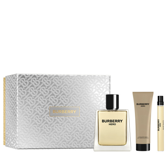 Κομψό σετ δώρου με πρωταγωνιστή το αντρικό άρωμα-φαινόμενο, το αινιγματικό και περιπετειώδες Burberry Hero Eau de Toilette. Το πρώτο άρωμα του Riccardo Tisci για τον βρετανικό οίκο είναι μια νέα ερμηνεία της αρρενωπότητας, συνδυάζει την δυναμικότητα με την κομψότητα, την ενέργεια με το συναίσθημα, τον αυθορμητισμό με την δημιουργικότητα. Δροσερό, φωτεινό και τολμηρό, συνδυάζει περγαμόντο, άρκευθο και μαύρο πιπέρι με τρία έλαια από τρία διαφορετικά είδη κέδρου, που δίνουν μοναδικό βάθος και χαρακτήρα στο άρωμα. Το σετ δώρου περιλαμβάνει το Burberry Hero Eau de Toilette (100ml), το Hair & Body Wash (75ml) από την αντίστοιχη αρωματική σειρά σώματος και ένα travel spray (10ml).