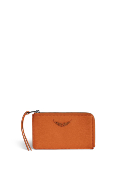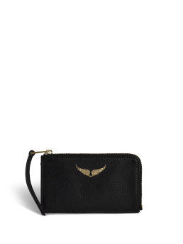 Γυναικείο δερμάτινο card holder του οίκου Zadig & Voltaire. Διαθέτει μια κύρια θήκη που κλείνει με φερμουάρ, 4 υποδοχές για κάρτες και υπογραφή Wing διακοσμημένη με στρας.