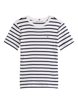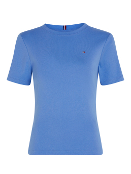 Γυναικείο ripped T-shirt της εταιρείας Tommy Hilfiger, σε slim γραμμή με στρογγυλή λαιμόκοψη και κεντητό σημαιάκι στο στήθος.