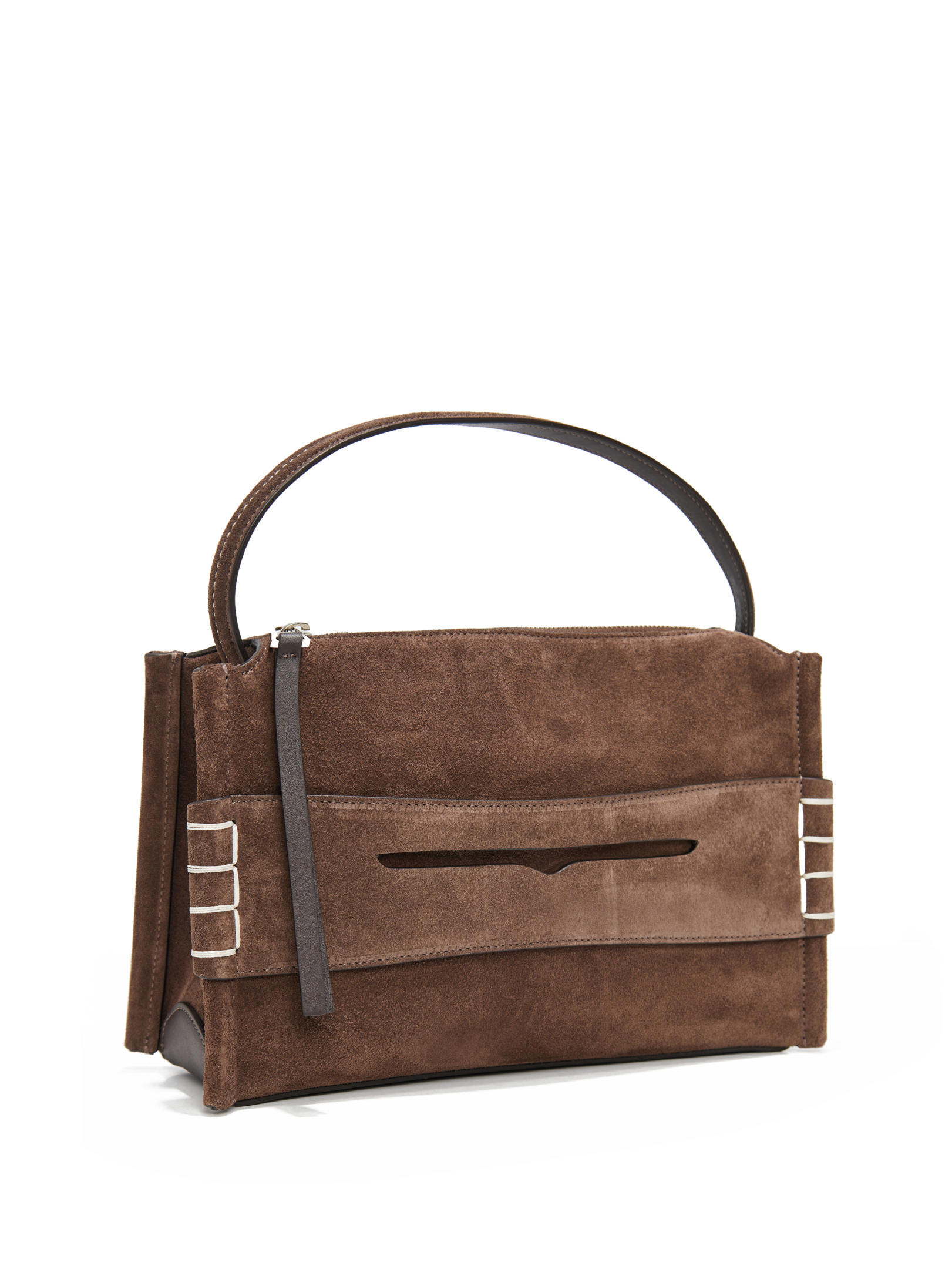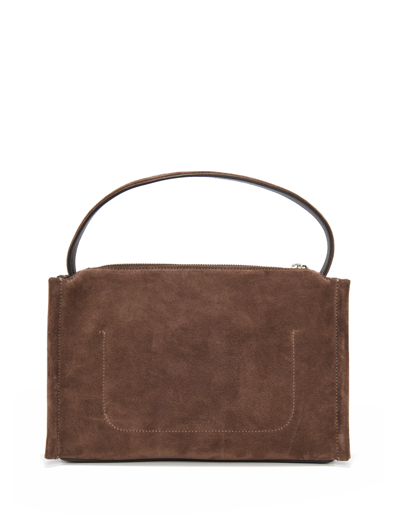 Γυναικεία σουετ τσάντα του οίκου JW Anderson με χειρολαβή, ραφές σε λευκό χρώμα και αποσπώμενο δερμάτινο λουράκι. Διαθέτει κλείσιμο με φερμουάρ και εσωτερική δερμάτινη τσέπη με ανάγλυφο λογότυπο.
