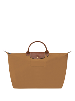 Τσάντα ταξιδιού από την εταιρεία Longchamp, με δερμάτινες χειρολαβές. Κλείνει με φερμουάρ και μπορεί να αναδιπλωθεί για περισσότερη ευελιξία στην μεταφορά.