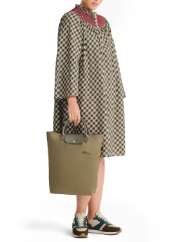Γυναικεία τσάντα χειρός από τον οίκο Longchamp. Κλείνει με κούμπωμα και είναι αναδιπλούμενη. Μπορεί να μεταφέρει έναν υπολογιστή 13 ιντσών.