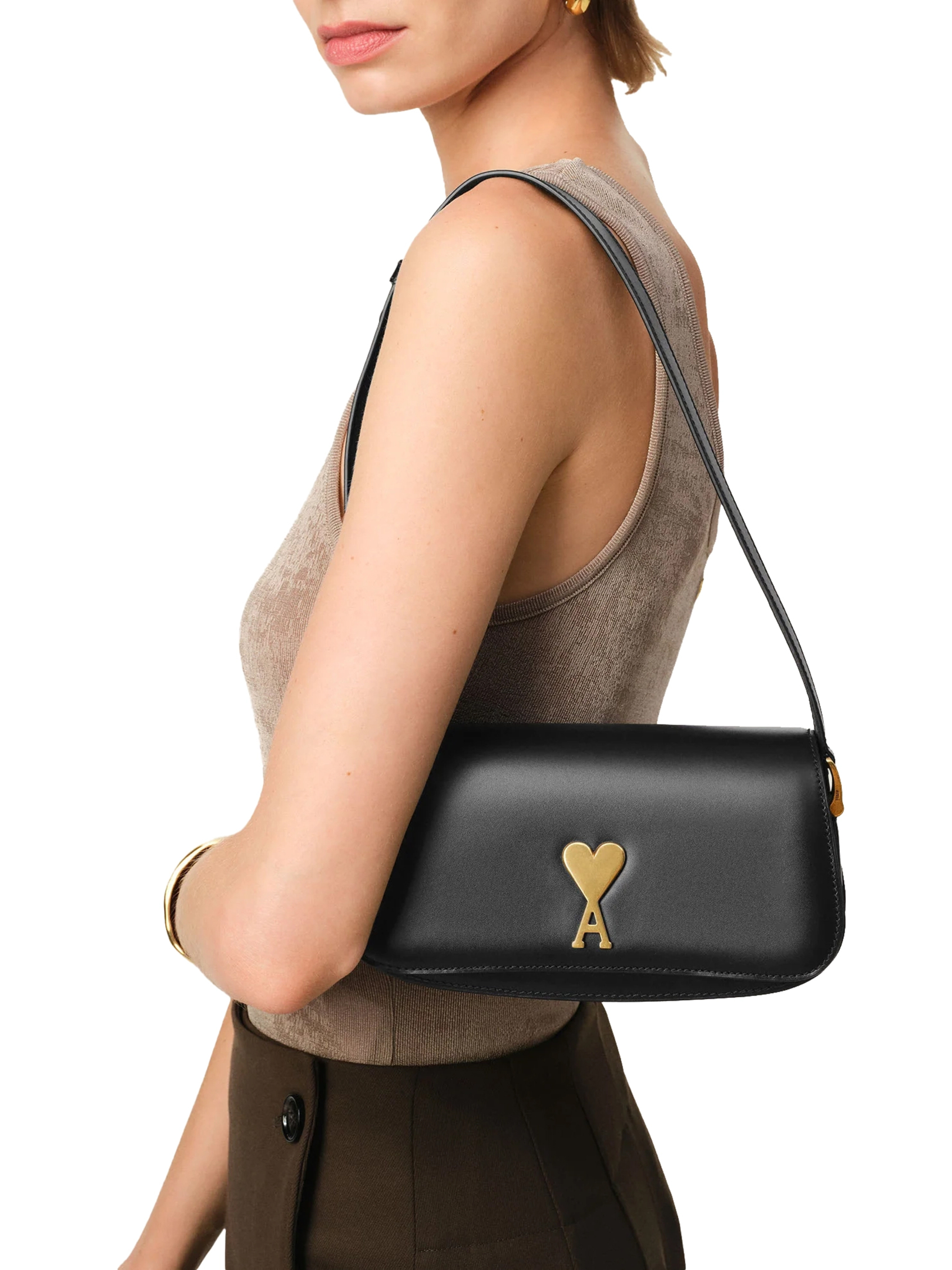 Γυναικεία δερμάτινη τσάντα ώμου της εταιρείας Ami Paris, με σουετ επένδυση. Διαθέτει δύο θήκες, κλείσιμο με μαγνήτη και μεταλλικό λογότυπο στο μπροστινό μέρος.