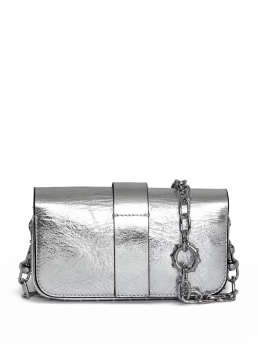Γυναικεία μίνι τσάντα του οίκου Zadig & Voltaire, από δέρμα σε vintage εφέ με μαγνητικό κλείσιμο, μεταλλικές λεπτομέρειες και αποσπώμενη αλυσίδα.