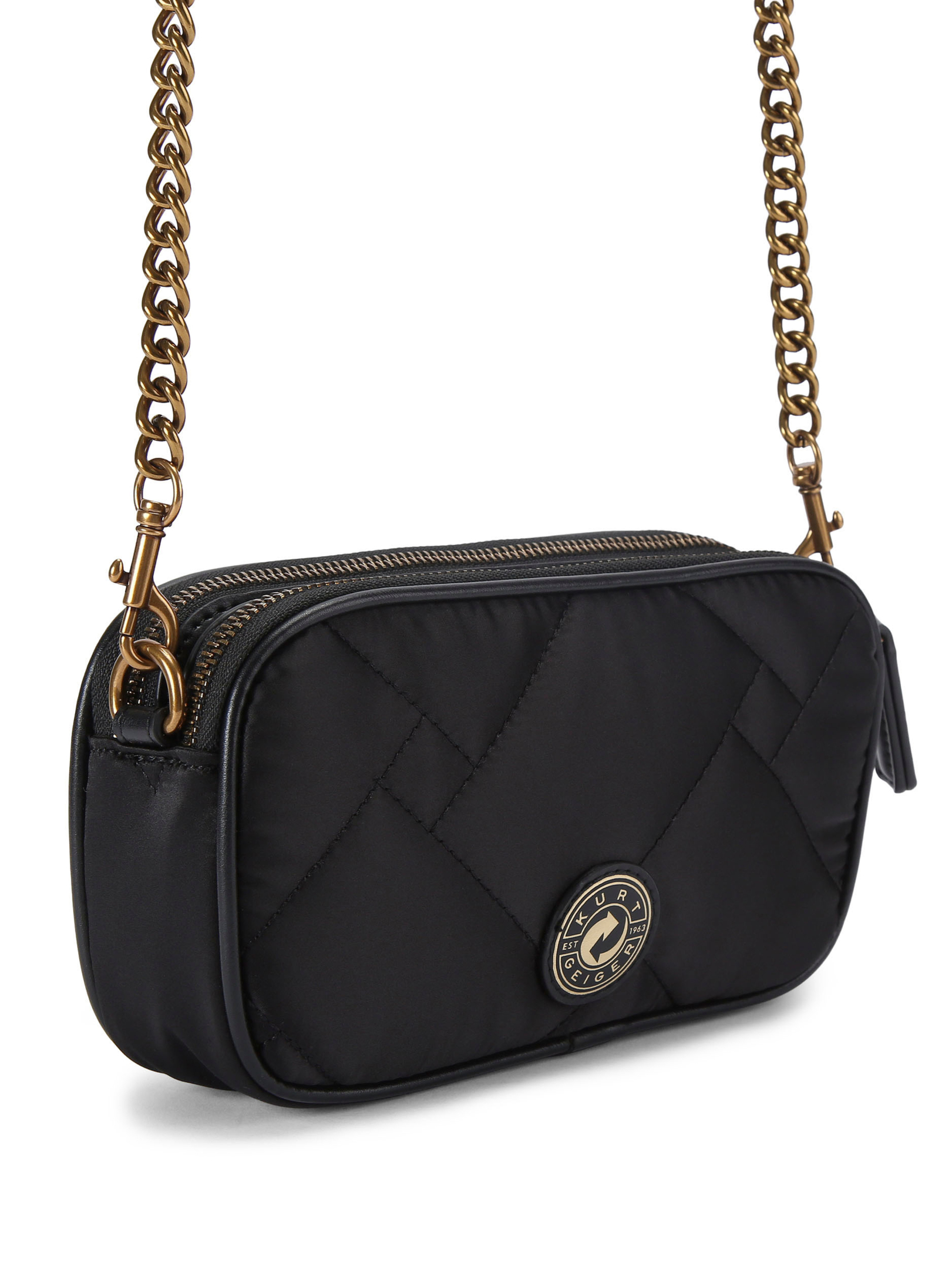 Γυναικεία τσάντα χειρός υπογραφής Kurt Geiger. Διαθέτει αποσπώμενο μικρό πορτοφόλι, ιμάντα και αλυσίδα ώμου και κλέινει με φερμουάρ.