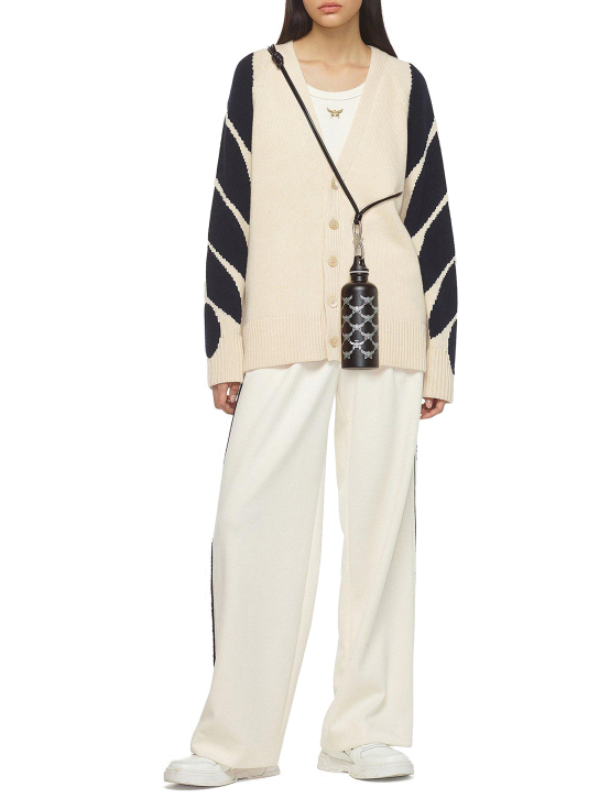 MCM θερμός, διακοσμημένο με μονόγραμμα και κατασκευασμένο από μέταλλο. Διαθέτει βιδωτό καπάκι και αποσπώμενο ιμάντα χειρός.
