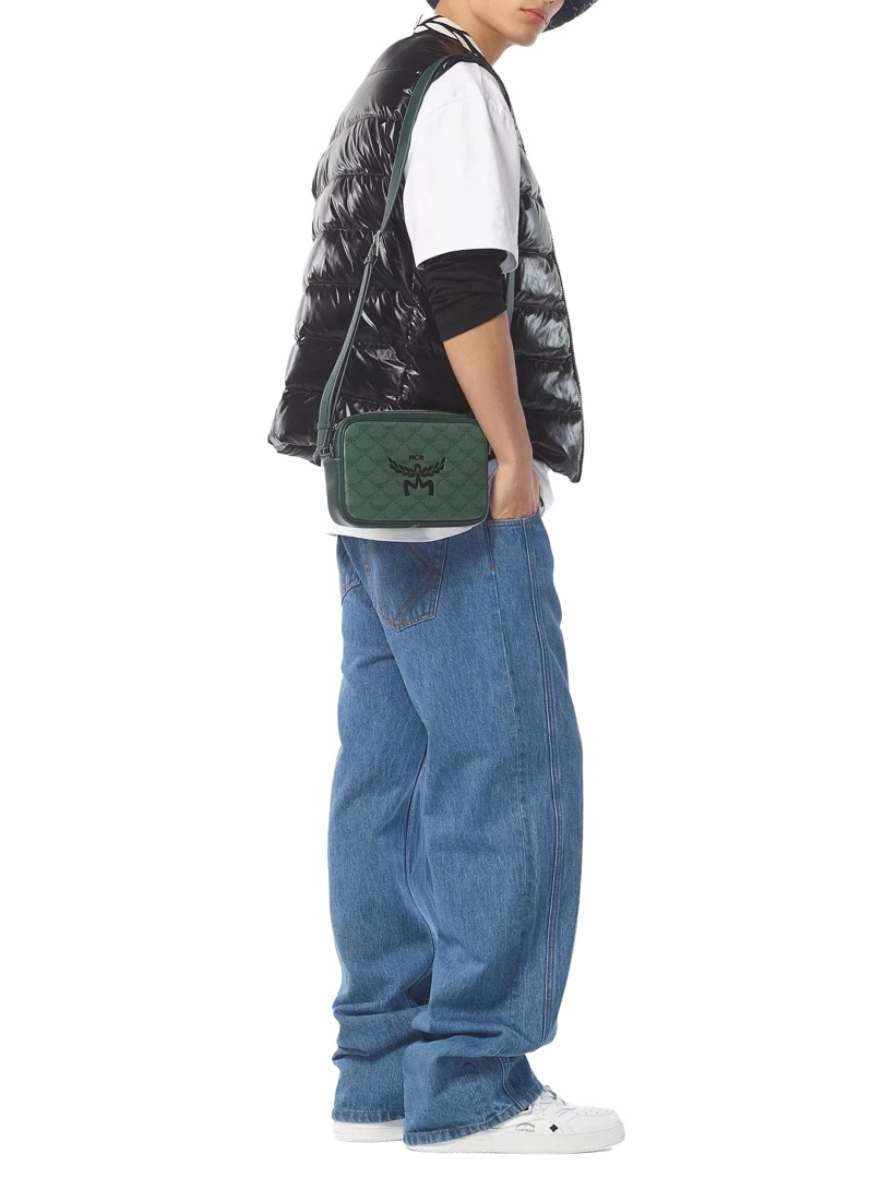 Unisex τσάντα χιαστί υπογραφής MCM. Διαθέτει all-over logo μοτίβο, ρυθμιζόμενο ιμάντα ώμου και κλείνει με φερμουάρ.