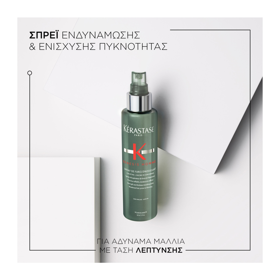 Το Kérastase Genesis Homme Spray De Force 150ml αποτελεί ένα σπρέι ενδυνάμωσης & ενίσχυσης της πυκνότητας για αδύναμα μαλλιά με τάση λέπτυνσης.