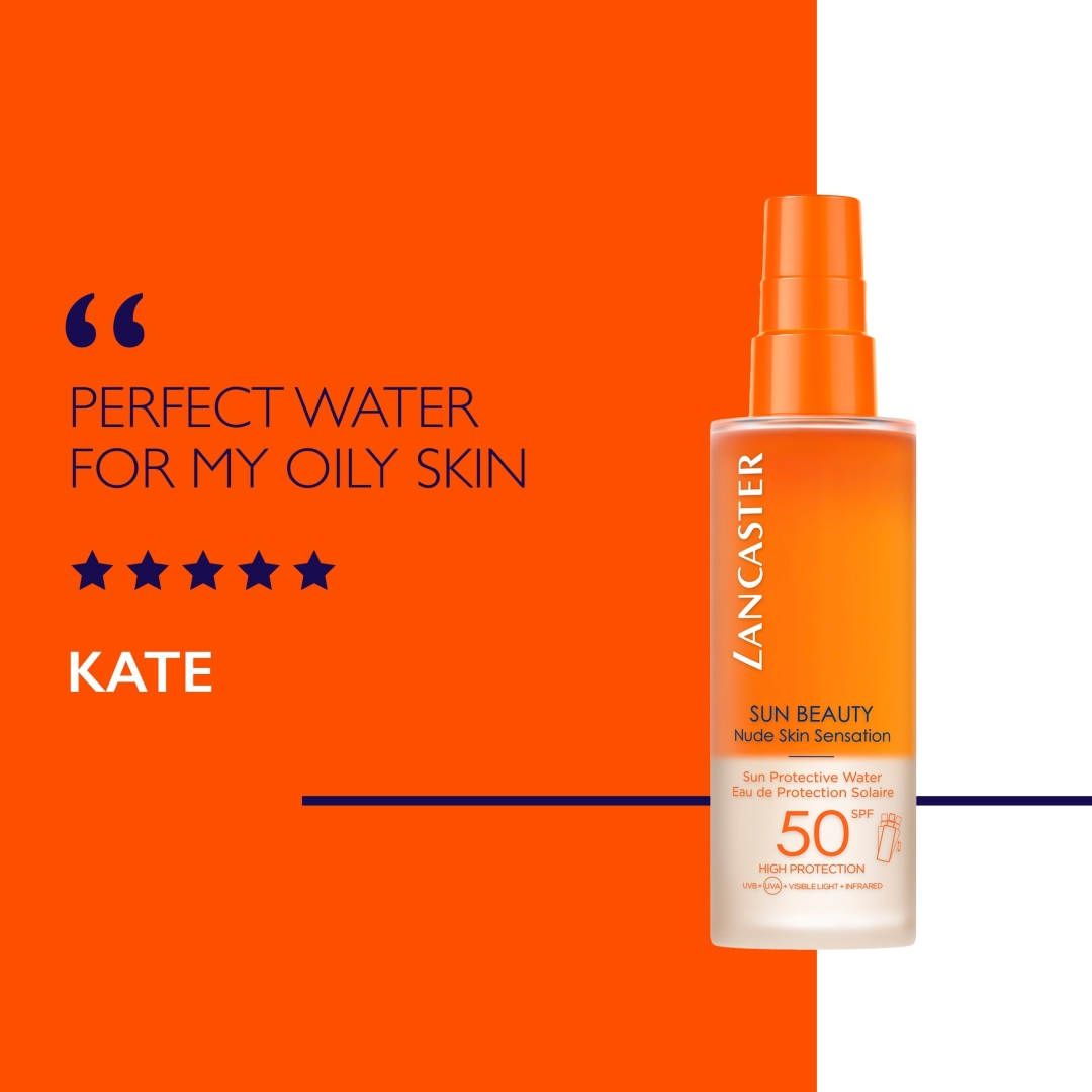 Το Sun Protective Water SPF50 σας προσφέρει την ευρύτερη αντηλιακή μας προστασία που στοχεύει στο 100% του ηλιακού φάσματος* και τώρα βοηθά επίσης στην επιδιόρθωση της επιδερμίδας από τις φθορές που προκαλούνται από τον ήλιο. Καθαρή και φιλική προς τους ωκεανούς, η απίστευτα ελαφριά, αναζωογονητική και σα "νερό" υφή μας παρέχει ένα υγιές χρυσαφένιο μαύρισμα σε δύο φορές λιγότερο χρόνο έκθεσης στον ήλιο** και αφήνει το δέρμα σας με μια αίσθηση γυμνού δέρματος.