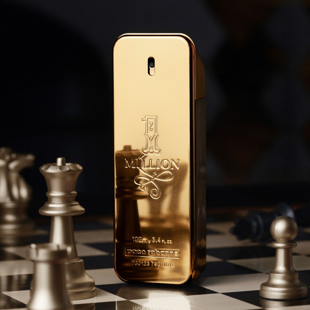 Το 1 Million Eau De Toilette 100ml του οίκου Rabanne, απενοχοποιεί τον χρυσό και γίνεται το απόλυτο αξεσουάρ για τον σύγχρονο άνδρα που επιστρέφει στις παλαιές του φαντασιώσεις: ακριβά αυτοκίνητα, το κυνήγι του χρήματος και των ωραίων γυναικών… οτιδήποτε λάμπει και του δίνει κύρος. Στην κορυφή, βρίσκουμε ένα δροσερό κοκτέιλ από νότες γκρέιπφρουτ, μέντας και μανταρινιού. Ακολουθεί μια σύνθεση από πικάντικες νότες, κανέλα και τριαντάφυλλο, που προσδίδουν αισθησιασμό και αρρενωπότητα. Τέλος, συναντάμε τη βελούδινη αίσθηση του δέρματος , του λευκού ξύλου, του amber και του πατσουλί.