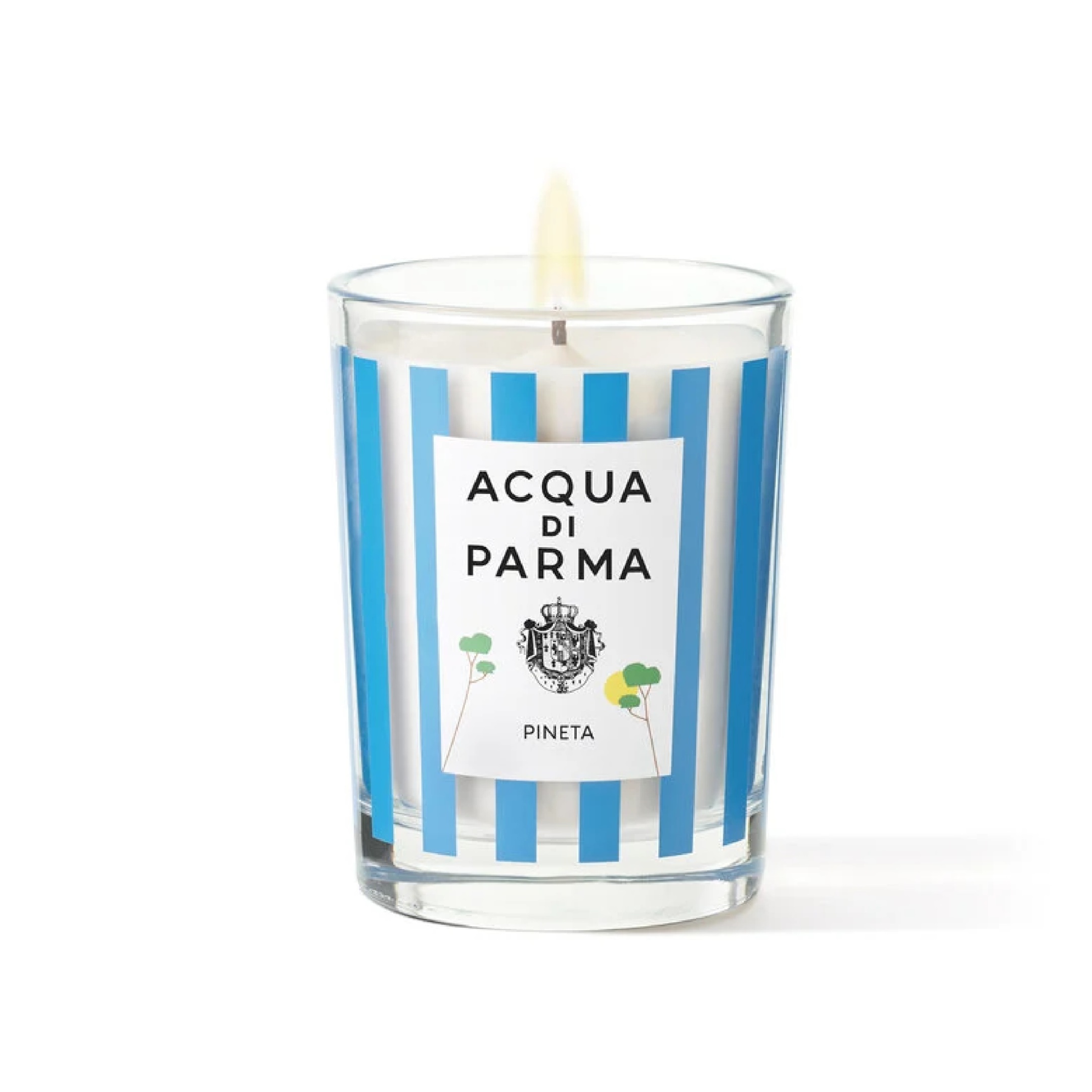 Pineta Candle La Terrazza 200gr: Μια limited edition σειρά που γιορτάζει την ομορφιά των ιταλικών τοπίων, θυμίζει μια βόλτα σε ένα παραθαλάσσια μονοπάτι κάτω από τον ίσκιο των πεύκων, κατά μήκος των ακτών της Τοσκάνης. Το άρωμα του ανοίγει με τις αρωματικές και πικάντικες νότες μυρτιάς και φρέσκου ελαίου από μαύρο πιπέρι Μαδαγασκάρης. Στην καρδιά του, αναδύεται η τραγανή ζωντάνια του ελαίου κυπαρισσιού και του ελαίου πευκοβελόνας, εμπλουτισμένη με αποχρώσεις του absolute θυμαριού. Στη βάση, το γήινο έλαιο πατσουλί συνυφαίνεται με τη ρητινώδη ζεστασιά του absolute cistus labdanum και το έντονο βάθος ακόρντου maquis. Ο ριγέ περιέκτης του κεριού είναι σχεδιασμένος από τον Ben Arpea, σε μπλε και άσπρο, για την limited edition σειρά La Terrazza του οίκου Acqua di Parma.
