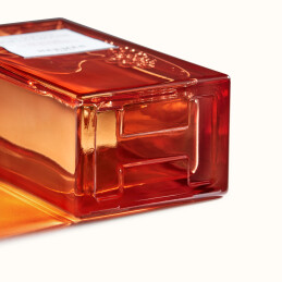 Οι ευθείες γραμμές του μπουκαλιού ζωντανεύουν με μια απαλή βενετσιάνικη ώχρα, το εμβληματικό χρώμα του eau de toilette Un Jardin sur la Lagune, ενώ συνδυάζονται με δυο λεπτομέρειες-υπογραφές: το γράμμα “H” που σφραγίζει την βάση, και το καρφί σέλας που είναι χαραγμένο επάνω στην αντλία.