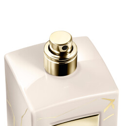 Αντίστοιχα φτιαγμένο σε ιβουάρ και βαθύ μαύρο τόνους, κάθε άρωμα είναι διακοσμημένο με χρυσά σχέδια, αντικατοπτρίζοντας την πολυτιμότητα της κεραμικής Kintsugi και αποτίοντας φόρο τιμής σε αυτή την τέχνη.