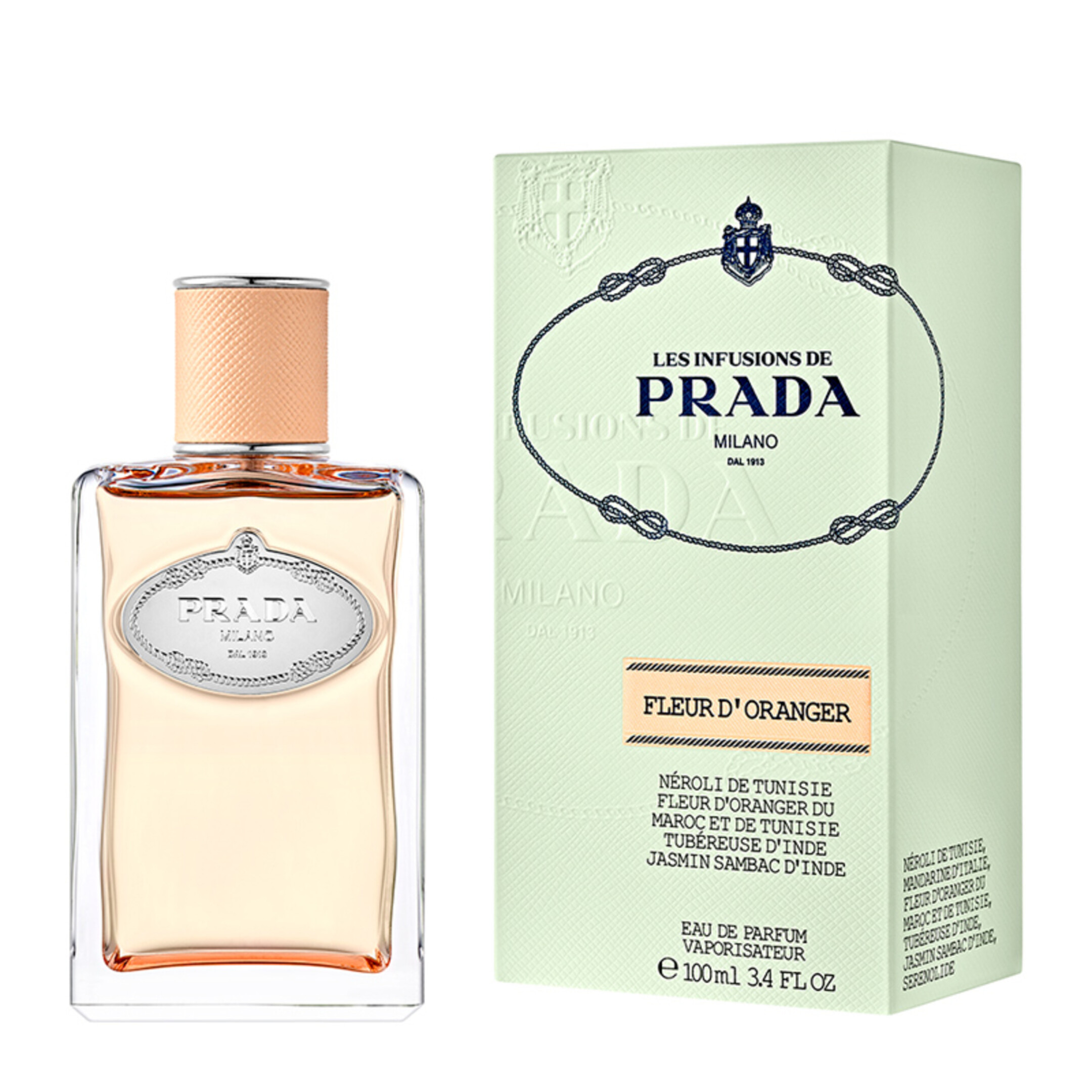 Πολυτελές και φωτεινό, το Infusion de Fleur d’Oranger Eau de Parfum 100ml συνδυάζει την οσφρητική απόδοση του άνθους πορτοκαλιάς με την υπογραφή της Prada. Ένα λουλουδάτο και δροσερό άρωμα που συνδυάζει ζωηρό νερολί και φιλήδονο γιασεμί Sambac και πολύτιμο σανδαλόξυλο.