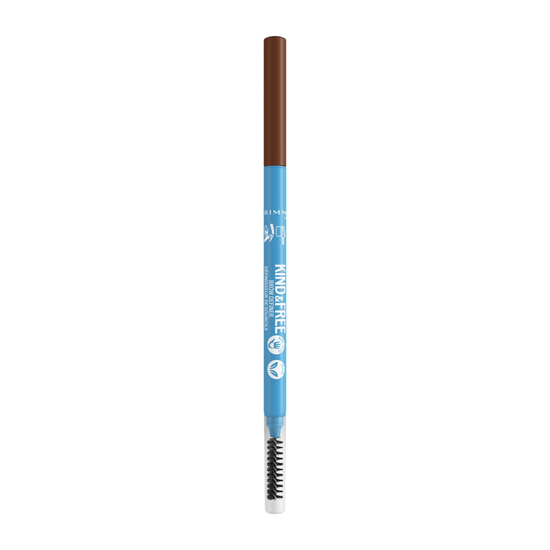 Το Kind & Free Brow Definer, στην απόχρωση 01 Blonde, είναι το πρώτο 100% vegan, clean και cruelty free μολύβι φρυδιών της Rimmel London, το οποίο διαθέτει ειδικό βουρτσάκι για πιο γεμάτα και καλοσχηματισμένα φρύδια. Η εξαιρετικά λεπτή μύτη του μηχανικού μολυβιού επιτρέπει τη δημιουργία λεπτών γραμμών, όμοιες με αληθινές τρίχες, ενώ ταυτοχρόνως γεμίζει τις αραιές περιοχές. Είναι εμπλουτισμένο με βιολογικό βούτυρο καριτέ, διάσημο για τις μαλακτικές του ιδιότητες αλλά και βιοτίνη που βοηθάει στην ενδυνάμωση της τρίχας.