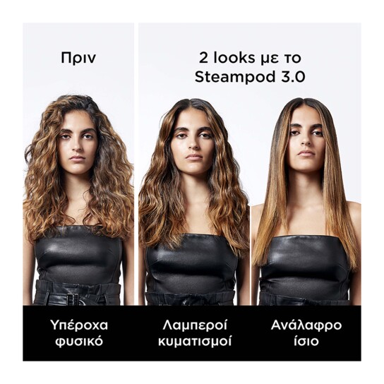 Για βέλτιστο αποτέλεσμα, συνιστούμε να χρησιμοποιείτε το SteamPod 3.0 σε συνδυασμό με το πρόγραμμα περιποίησης SteamPod που θα σας προτείνει ο κομμωτής σας. Το πρόγραμμα SteamPod εξασφαλίζει βέλτιστη προστασία της τρίχας, έλεγχο του φριζαρίσματος μέχρι και για 24 ώρες, και μέγιστη λείανση για μαλλιά απαλά και λαμπερά, με φυσική κίνηση.