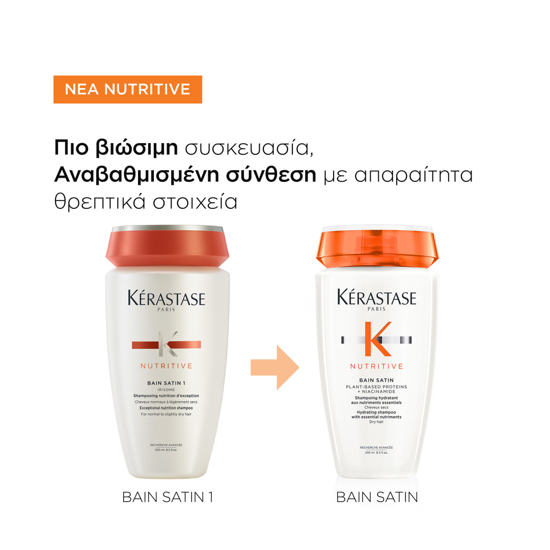Το Nutritive Bain Satin παίρνει πολύ σοβαρά τον ρόλο του ως ενυδατικού σαμπουάν! Σχηματίζει ένα ανάλαφρο φιλμ γύρω από την τρίχα προσφέροντας θρέψη, λείανση, εύκολο ξεμπέρδεμα, και λάμψη, για μαλλιά που αντιστέκονται στην αφυδάτωση. Τι σημαίνει αυτό; Μα... πιο απαλά, πιο λαμπερά, πιο υγιή όψη των μαλλιών, φυσικά! Ποια είναι τα βασικά συστατικά;