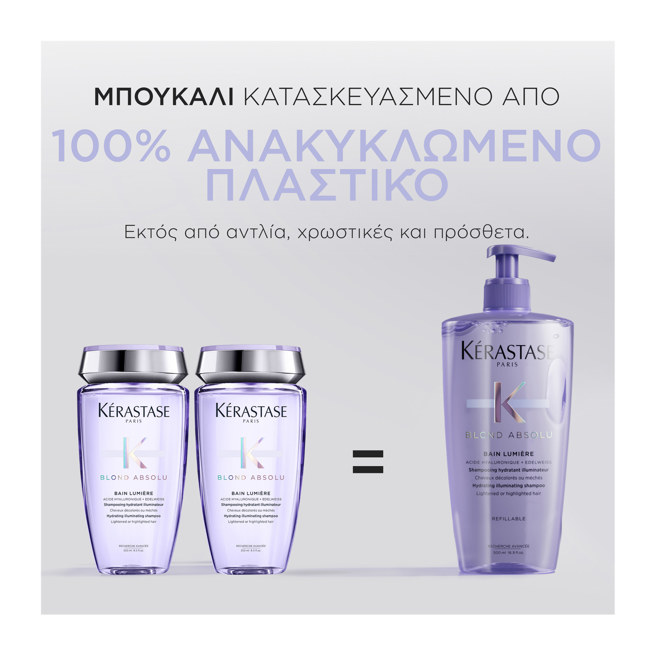 BLOND ABSOLU REFILLABLE ΣΑΜΠΟΥΑΝ BAIN LUMIERE ΓΙΑ ΣΥΝΤΗΡΗΣΗ ΤΩΝ ΞΑΝΘΩΝ ΒΑΜΜΕΝΩΝ ΜΑΛΛΙΩΝ