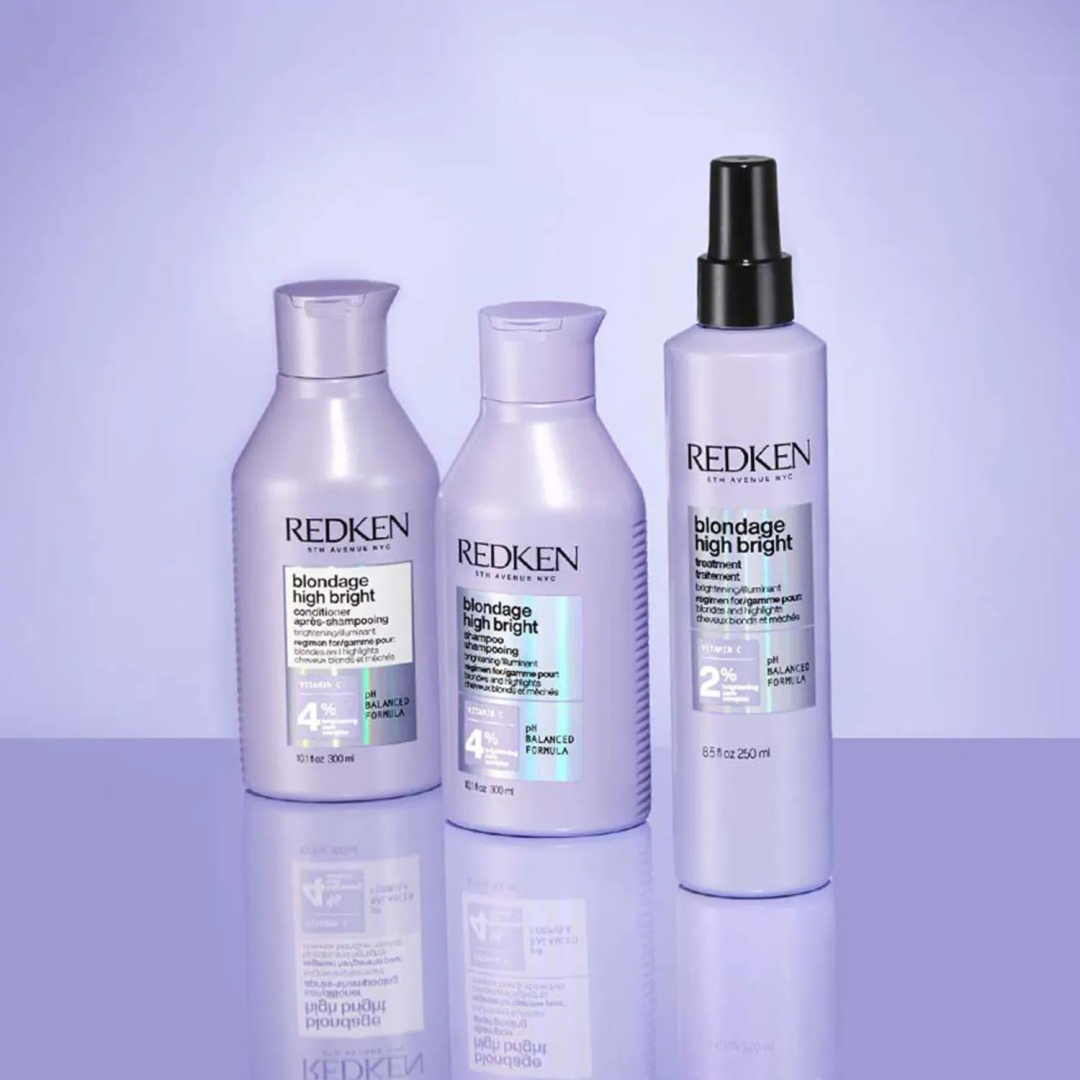 Το σαμπουάν Blondage High Bright είναι η απάντησή μας στα ξανθιά μαλλιά που χάνουν την φωτεινότητά τους μετά από υπηρεσίες βαφής και ξανοίγματος. Το νέο αυτό σύστημα περιποιήσης του ξανθού είναι εμπλουτισμένο με βιταμίνη C καθώς και με το Brightening Care Complex της Redken, το οποίο στοχεύει στην απομάκρυνση των καταλοίπων ενώ παράλληλα φωτίζει τα θαμπά, βαμμένα μαλλιά. Αποκτήστε άμεσα πιο λαμπερό ξανθό από την πρώτη κιόλας χρήση της ολοκληρωμένης σειράς Blondage High Bright. Το σαμπουάν αποτελεί το 2o βήμα της διαδικασίας περιποιήσης.