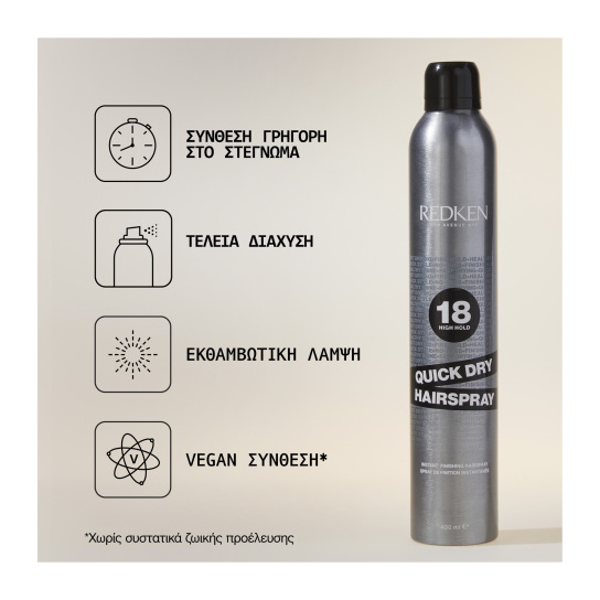QUICK DRY HAIRSPRAY ΣΠΡΕΙ ΜΕ ΠΡΟΩΘΗΤΙΚΟ ΑΕΡΙΟ ΓΙΑ ΔΥΝΑΤΟ ΈΛΕΓΧΟ