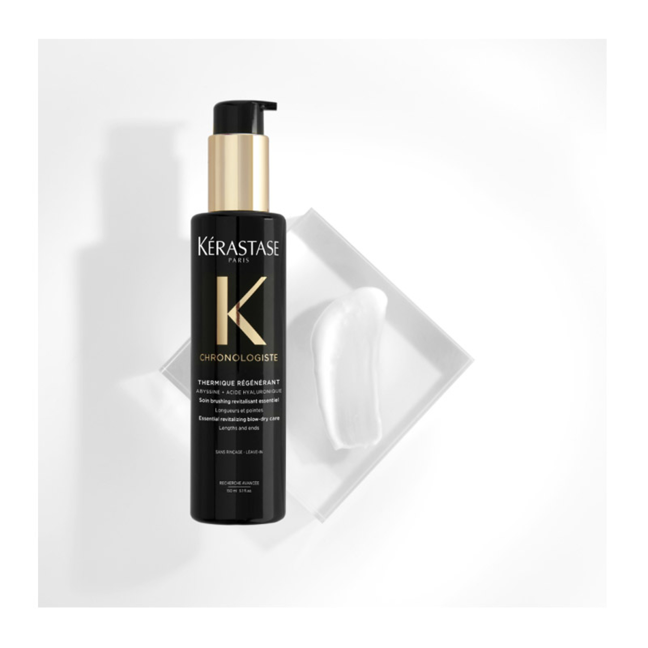Η θερμοπροστατευτική λοσιόν Thermique Regenerant 150ml, λειαίνει και προστατεύει τα μαλλιά πριν τις διαδικασίες styling. Εμπλουτισμένη με Υαλουρονικό Οξύ, Abyssine & Βιταμίνη E, προστατεύει από θερμότητα μέχρι και τους 230°C και εξασφαλίζει 24 ώρες ελέγχο του φριζαρίσματος. Διευκολύνει το styling, για μαλλιά με νεανική ελαστικότητα και ζωντάνια. Εμπεριέχει το ντελικάτο άρωμα-υπογραφή της σειράς Chronologiste, με νότες tea rose, ανάλαφρων ξύλων, και μόσχων. Το Thermique Régénérant είναι μια πολυτελής εμπειρία περιποίησης για όλες τις αισθήσεις. Δεν ξεβγάζεται.