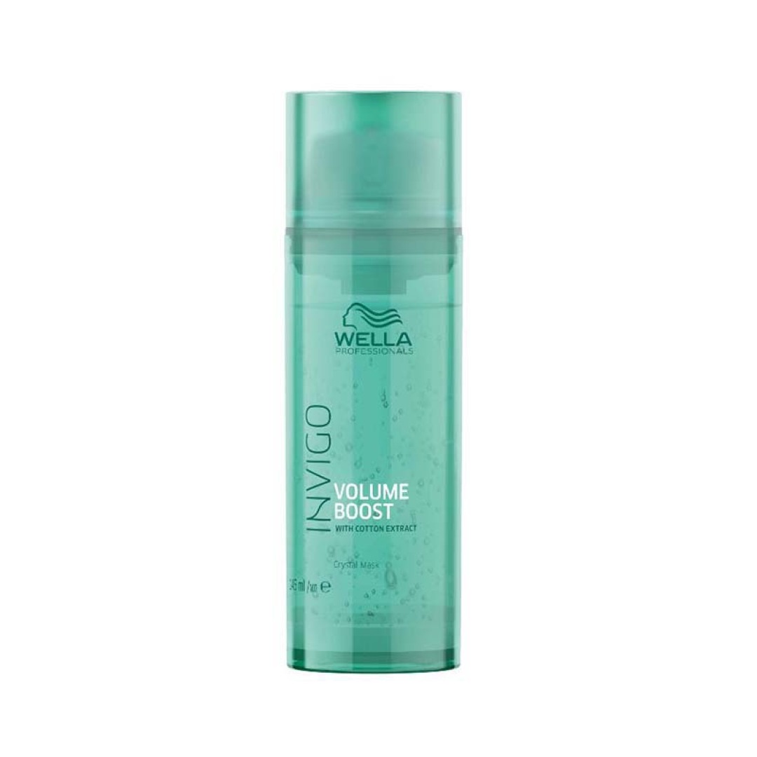 Wella Professionals Invigo Volume Boost Crystal Mask 145ml. Οι ελαφριές συνθέσεις χαρίζουν ευκολία χειρισμού και λάμψη, χωρίς να βαραίνουν τα μαλλιά. Τα πολυμερή Bodifying Spring Force αγκαλιάζουν τις ίνες των μαλλιών και βοηθούν στη δημιουργία χτενισμάτων με μεγάλο όγκο κατά το στέγνωμα με πιστολάκι. Το βαμβάκι είναι μια μαλακή αλλά σταθερή ίνα με παρόμοια σταθερότητα και απαλότητα, το οποίο χρειάζονται τα λεπτά μαλλιά με όγκο. Άμεση, ελαφριά περιποίηση. Για αισθητά αυξημένο όγκο* και ευκολία χειρισμού των μαλλιών. Η πρώτη διαφανής θεραπεία της Wella Professionals χωρίς ξέβγαλμα με Spring Force Blend: πολυμερή όγκου και συστατικά ελαφριάς μαλακτικής δράσης που κάνουν τα μαλλιά γεμάτα και απαλά στο άγγιγμα, χωρίς να τα βαραίνουν.