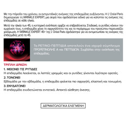 Εφαρμόστε την Wrinkle Expert Day Cream 45+ καθημερινά με μικρές, κυκλικές κινήσεις σε τέλεια καθαρισμένο πρόσωπο και λαιμό.