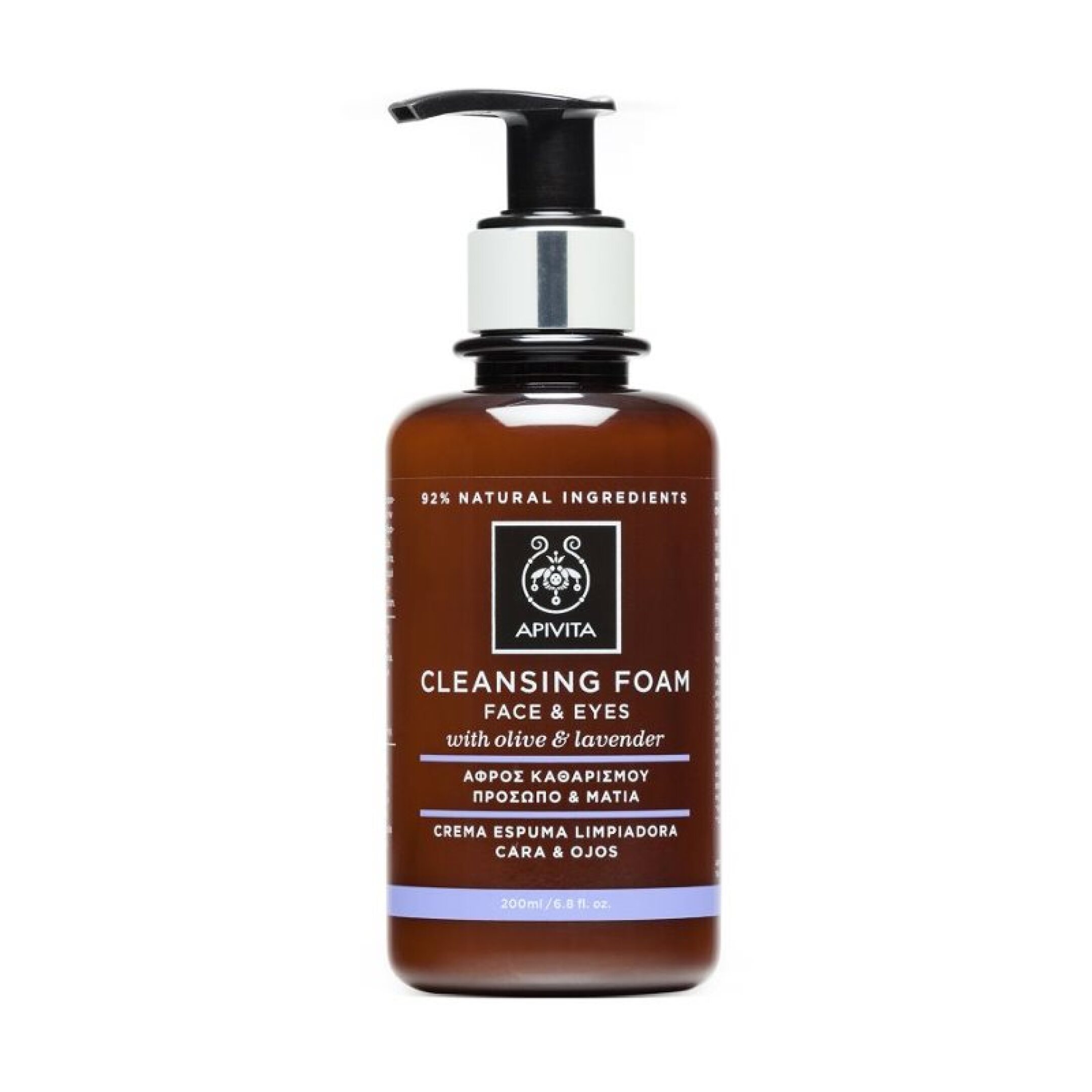 O Kρεμώδης Aφρός Kαθαρισμού για Πρόσωπο και Μάτια 200ml με ελιά & λεβάντα καθαρίζει απαλά πρόσωπο και μάτια από ρύπους και μακιγιάζ χωρίς να ερεθίζει ή να αφυδατώνει την επιδερμίδα.