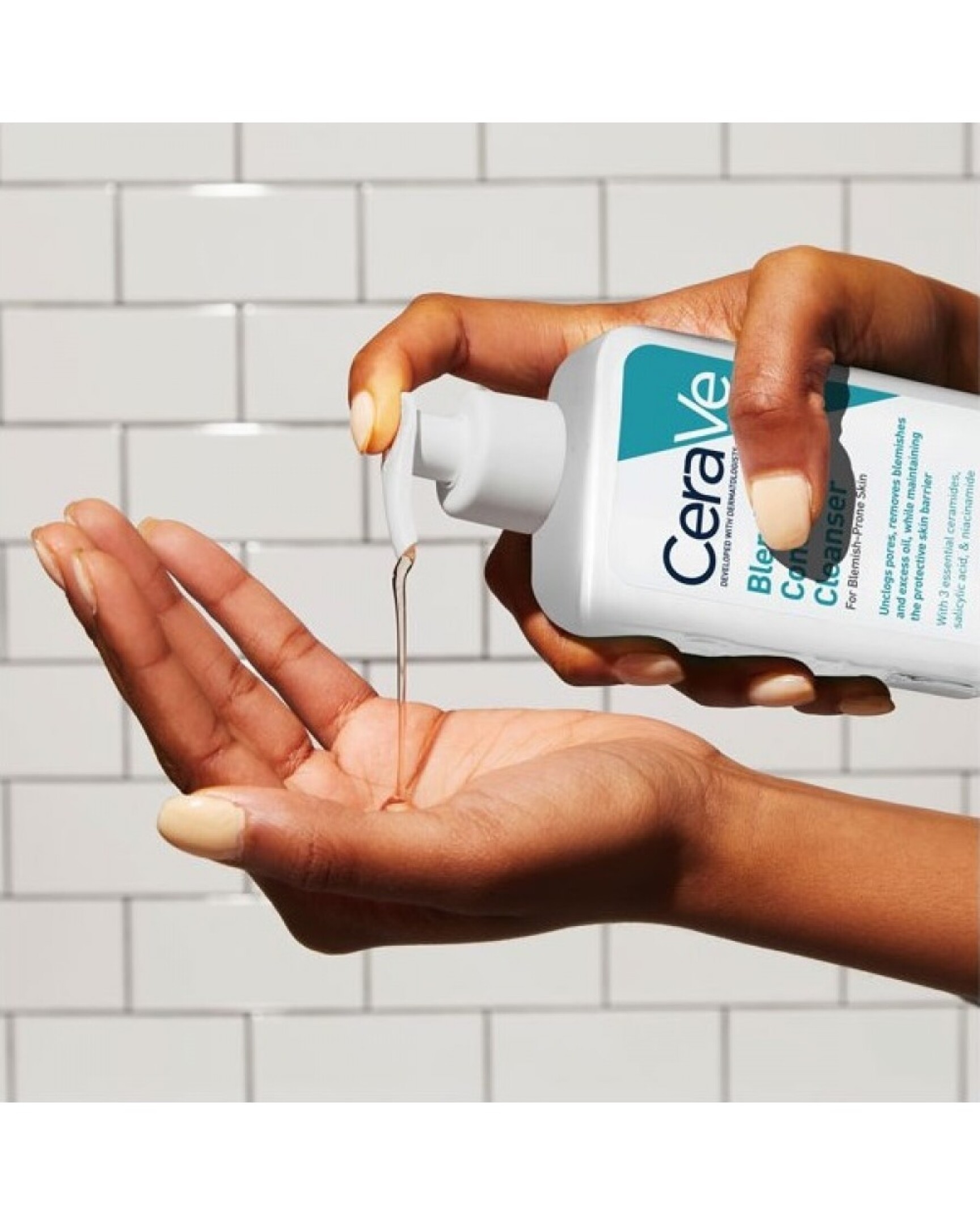 Το Blemish Control Cleanser της CeraVe είναι ένα gel καθαρισμού κατά των ατελειών με σαλικυλικό οξύ, έναν αποτελεσματικό απολεπιστικό παράγοντα που βοηθά στην απομάκρυνση των νεκρών κυττάρων και του σμήγματος, μειώνει τα μαύρα στίγματα και ελαχιστοποιεί την όψη των πόρων. Ο εξυγιαντικός άργιλος, που περιέχει, συμβάλλει στη βελτίωση της όψης των πόρων. Με Τεχνολογία Απορρόφησης Λιπαρότητας, σε μια αναζωογονητική υφή που μεταμορφώνεται από gel σε αφρό, καθαρίζει την επιδερμίδα και αποσυμφορεί τους πόρους συμβάλλοντας στην πρόληψη νέων ατελειών, ενώ ταυτόχρονα διαφυλάσσει τον προστατευτικό επιδερμιδικό φραγμό χάρη στα 3 απαραίτητα ceramides.