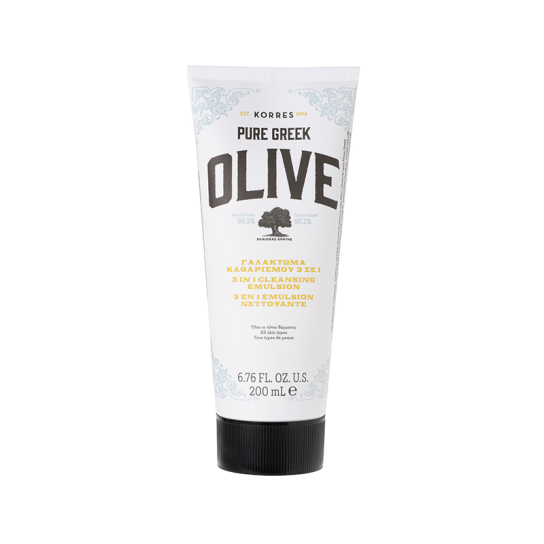Απαλό γαλάκτωμα καθαρισμού 3 σε 1 που καθαρίζει και τονώνει την επιδερμίδα απομακρύνοντας αποτελεσματικά ρύπους και μακιγιάζ από πρόσωπο και μάτια. Εμπλουτισμένο με πολύτιμο αντιοξειδωτικό εκχύλισμα από κύτταρα φύλλων Ελιάς, εξαιρετικά παρθένο Ελαιόλαδο και φυσικούς καθαριστικούς παράγοντες, καθαρίζει χωρίς να αφήνει αίσθηση λιπαρότητας.