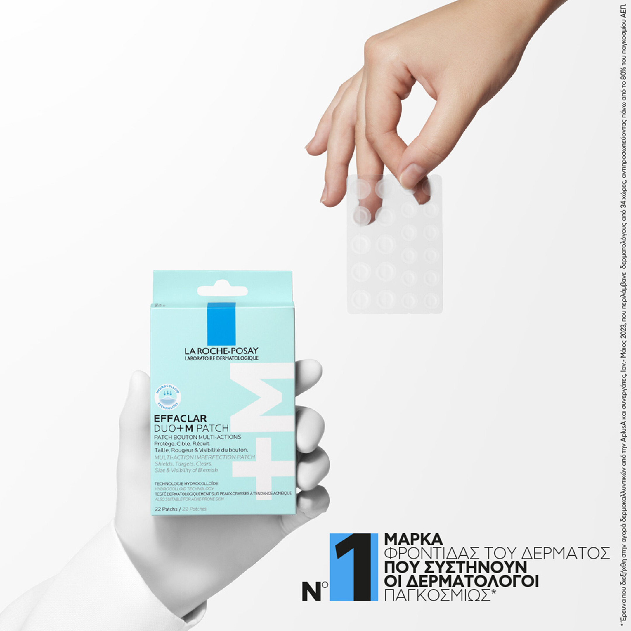 Το Εffaclar Duo+M PATCH της La Roche-Posay είναι αυτοκόλλητο επίθεμα πολλαπλών δράσεων κατά των ατελειών. Προστατεύει, στοχεύει και μειώνει το μέγεθος & την ορατότητα των ατελειών. Εξαιρετικά λεπτό, ενισχυμένο με τεχνολογία υδροκολλοειδών 420-microns. Κλινικά αποδεδειγμένο ότι μειώνει τις ατέλειες σε μόλις 3 ώρες*. Δημιουργεί ασπίδα προστασίας απορροφώντας τους ρύπους, διατηρώντας παράλληλα την ενυδάτωση της επιδερμίδας για να επιταχύνει τη μείωση των ατελειών. Προστατεύει από τη δράση των εξωτερικών επιθετικών παραγόντων. Στοχεύει τοπικά στα σπυράκια και στις ατέλειες κατά την εφαρμογή του. Μειώνει την ορατότητα των ατελειών διατηρώντας τες σε ένα προστατευμένο περιβάλλον. Παράλληλα, τις προφυλάσσει από την επιδείνωση και την δημιουργία ορατών σημαδιών.
