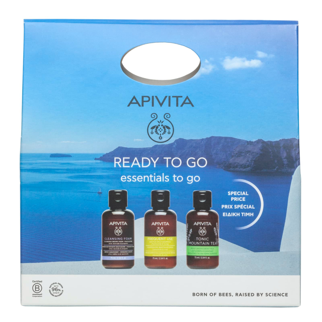 ESSENTIALS TO GO σε ειδική τιμή: Mini Σαμπουάν Καθημερινής Χρήσης, Mini Tonic Mountain Tea Αφρόλουτρο & Mini Αφρός Καθαρισμού για Πρόσωπο & Μάτια. Είστε έτοιμοι για ταξίδι; Μην ξεχάσετε να πάρετε αυτά τα must-have προϊόντα Apivita. Το απόλυτο σετ ταξιδίου με σαμπουάν, αφρόλουτρο και καθαριστικό προσώπου και ματιών.