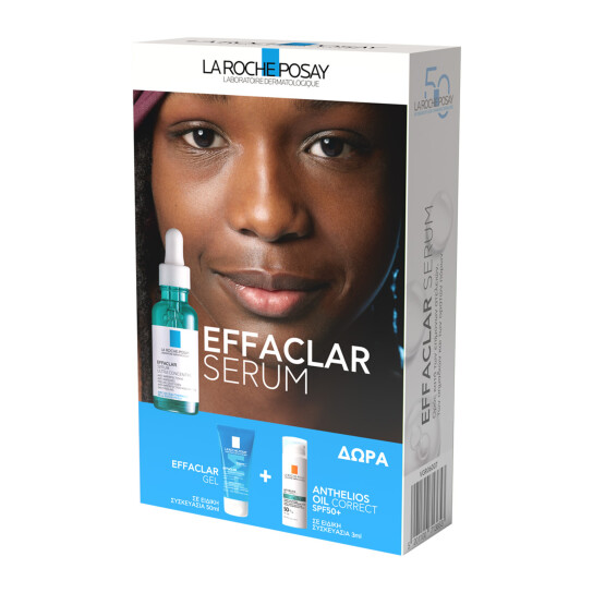 Effaclar Serum Gift Set: Ο ορός υψηλής συγκέντρωσης EFFACLAR Serum της La Roche-Posay είναι σχεδιασμένος με ένα σύμπλοκο απολεπιστικών οξέων συνδυασμένο με καταπραϋντική Νιασιναμίδη, που στοχεύει τα μαύρα στίγματα, τις ατέλειες, τα σημάδια και τους ορατούς πόρους της επιδερμίδας με τάση ακμής.