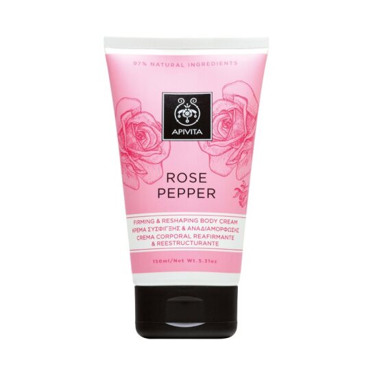 Δροσερή κρέμα Rose Pepper 150ml, που συσφίγγει και διατηρεί την ελαστικότητα της επιδερμίδας, καταπολεμά το τοπικό πάχος σε γοφούς μηρούς και μέση ενεργοποιώντας τη διαδικασία λιπόλυσης, ενώ αφήνει το δέρμα ενυδατωμένο και αναζωογονημένο.