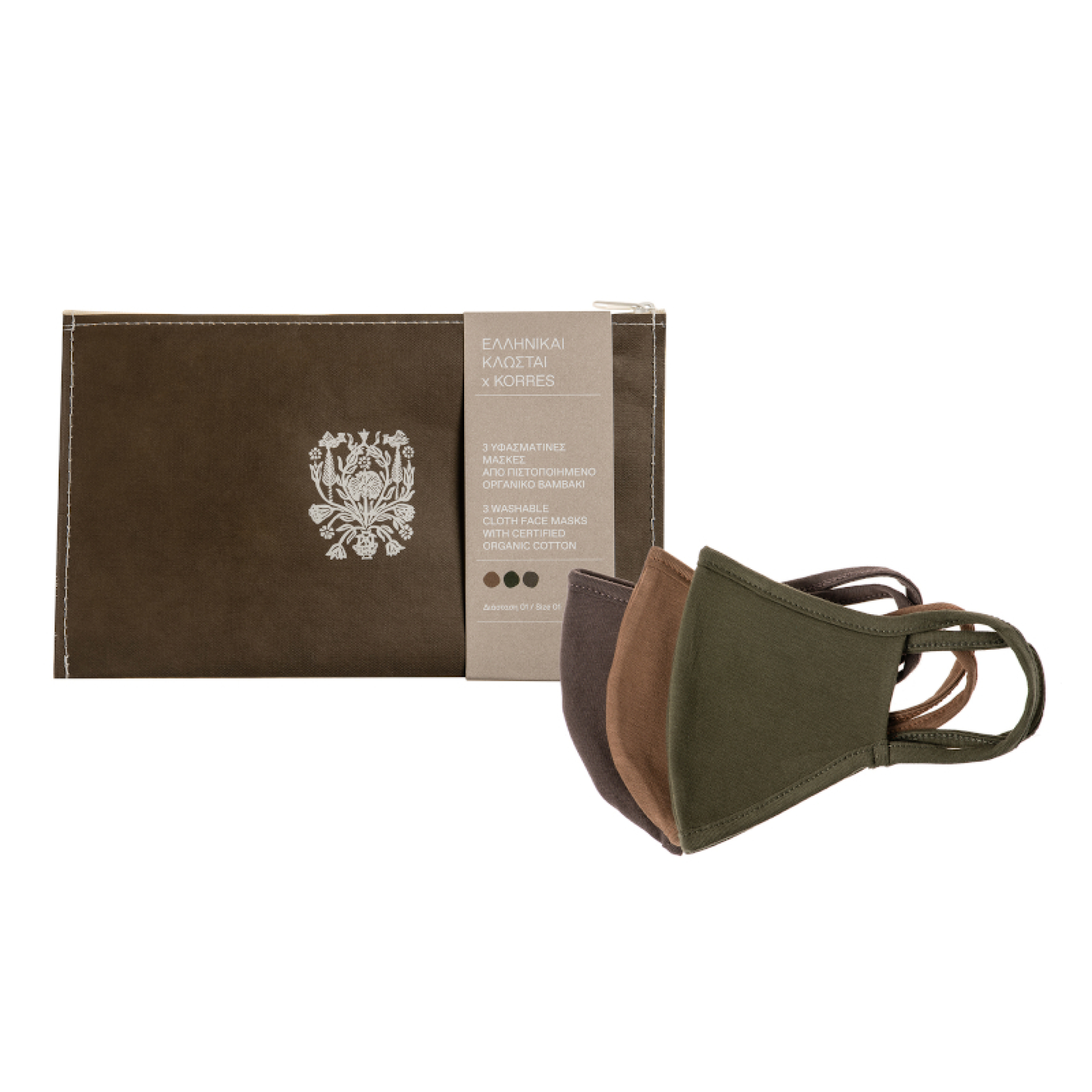 Korres Σετ Neutral Υφασμάτινων Μασκών Size 02 σε Λαδί Αποχρώσεις, 3 τεμάχια.